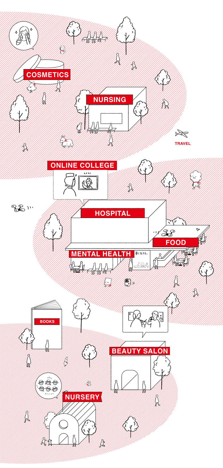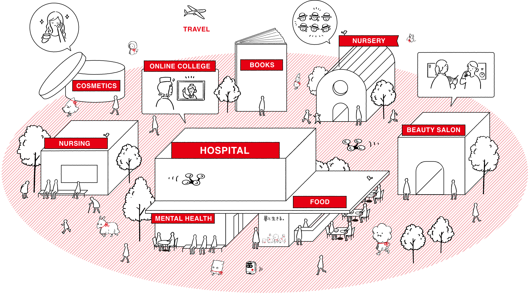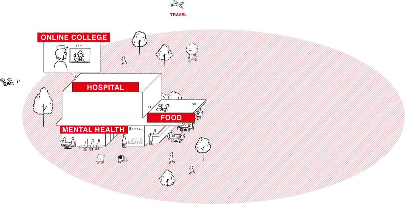 2つの病院と3つのクリニックがあるよ!